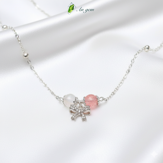Dây chuyền nữ Ribbon mix đá tự nhiên, Moonstone, dâu hồng, aquamarrine, xà cừ, vòng cổ nữ An Gem quà tặng tinh tế dịp lễ tết valentine sinh nhật