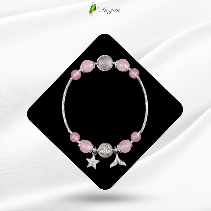 Vòng tay An Gem được chế tác tinh xảo từ đá Thạch Anh Dâu Hồng và Thạch Anh Hồng tự nhiên, biểu tượng cho năng lượng của tình yêu, hạnh phúc và sự chữa lành cảm xúc.