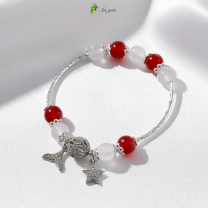 | Phân Loại | Đá thạch anh dâu hồng & đá xà cừ charm mạ bạc, Set quà công chúa (Kèm vòng tay Dâu hồng&Xà cừ charm mạ bạc) |