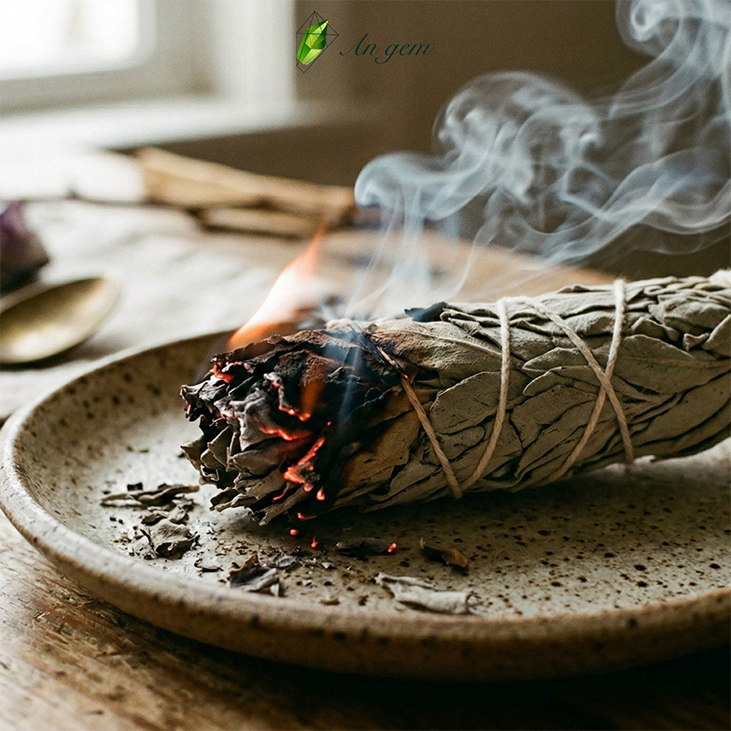 • Bước 4 – Kết thúc: Dụi tắt đầu bó lá vào đĩa hoặc cát để dùng cho lần sau. Nên mở cửa sổ để khói mang theo năng lượng tiêu cực thoát ra ngoài.