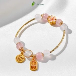 • Vòng tay nữ đá tự nhiên mix charm vàng hồng An Gem